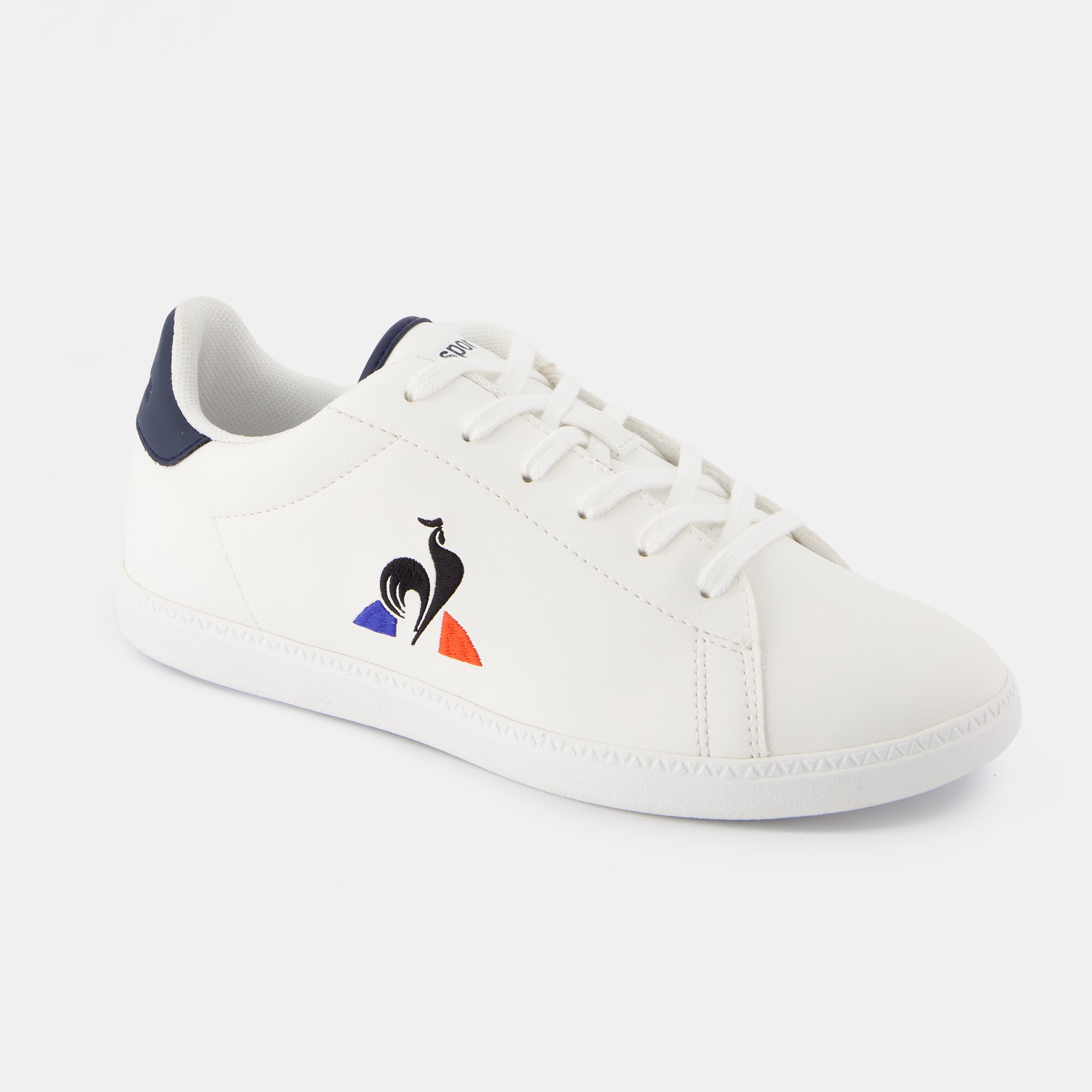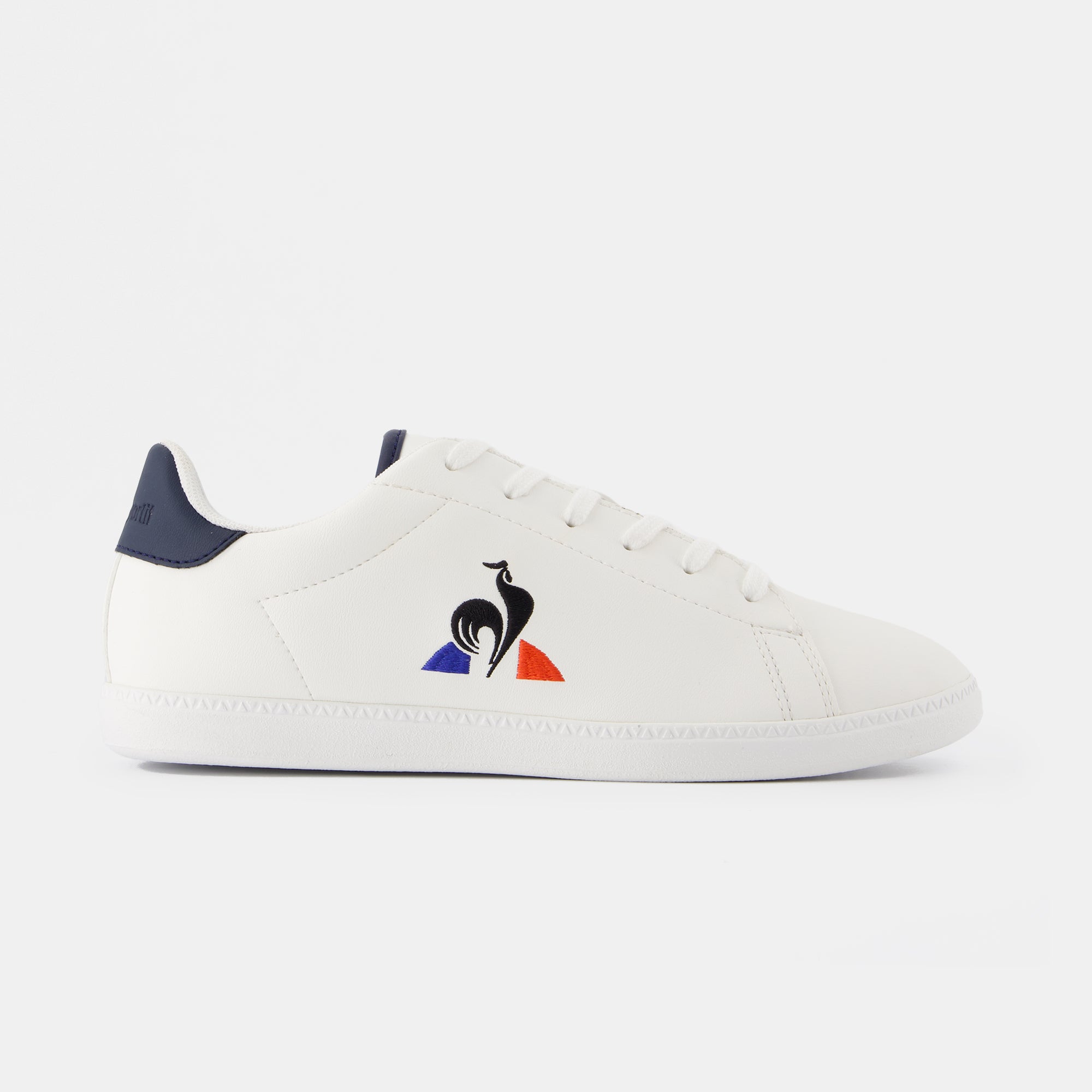 Tige en cuir synthétique avec logo latéral tricolore brodé – Lacets poly/coton – Doublure textile – Lacets poly/coton - Semelle intérieure confort – Semelle extérieure en caoutchouc souple