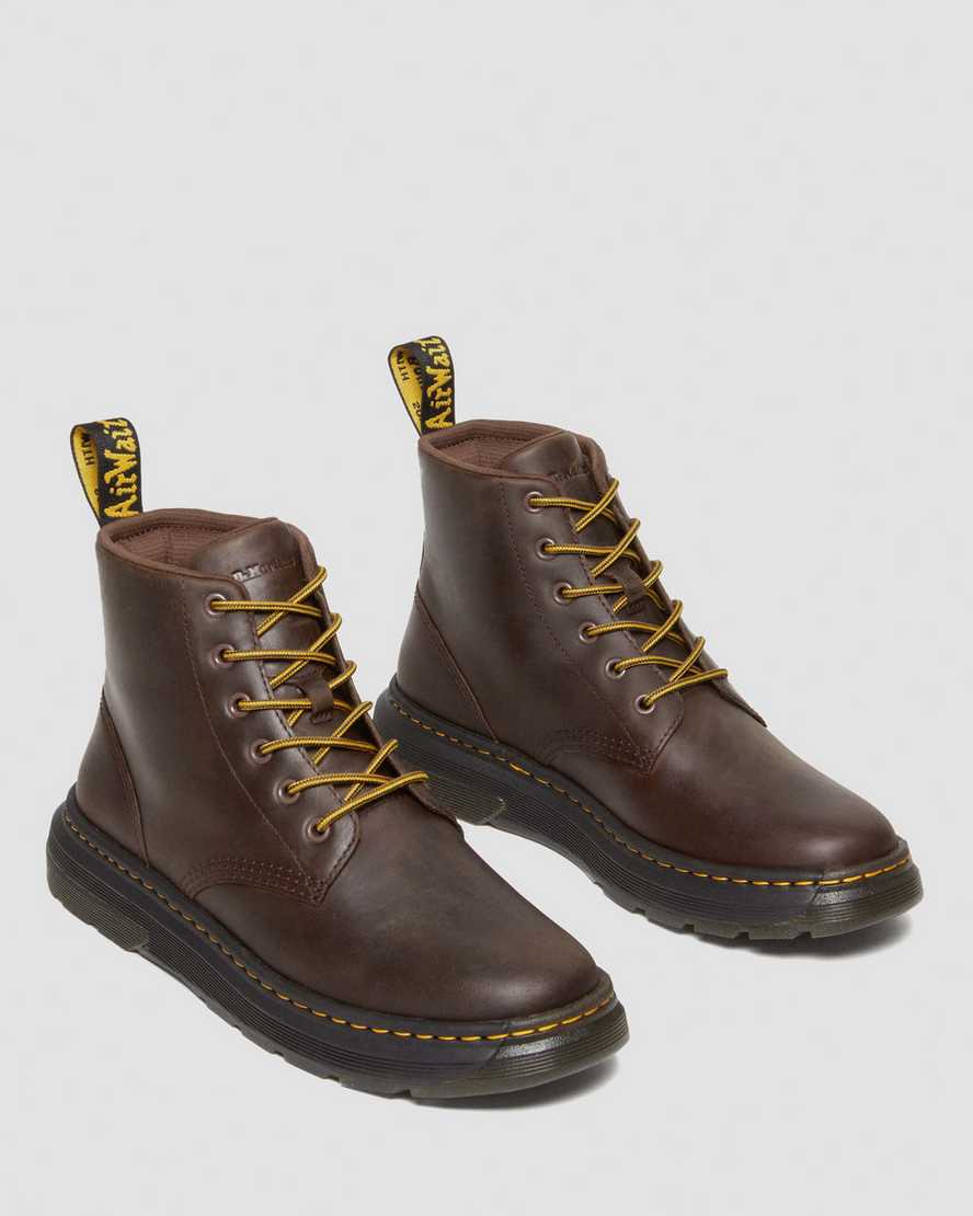 Taking cues from our 6-eye 101 silhouette, the Crewson Chukka boot unites our heritage markings in one of our lightest ever constructions. Engineered with functionality in mind, the boots are set on a new lightweight edition of our classic sole and fitted with internal padding to keep you comfortable. DM's DNA comes through in the yellow stitching, yellow and black heel loop and a Dr. Mthtartens deboss branded tongue patch.
