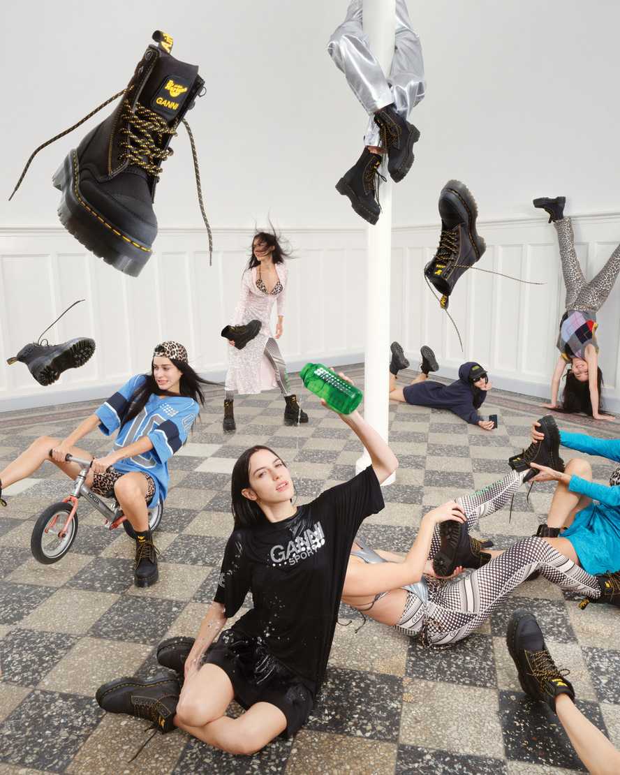 Cool just got tougher. Our first collaboration with GANNI sees two brands collide over a shared ethos: dressing in attitude. Defying convention. And doing things differently. This mindset is applied to our rework of the Jadon boot. Engineered with Extra Tough nylon. Additional yellow DM��s stitching. And recycled polyester laces that nod to GANNI��s obsession with alternative materials. This is the boot for anyone that wants to take up space and be unapologetically themselves. You��ll also find the GANNI butterfly on the side of each boot, as well as a dual-branded tongue and rubber strip down the back.
