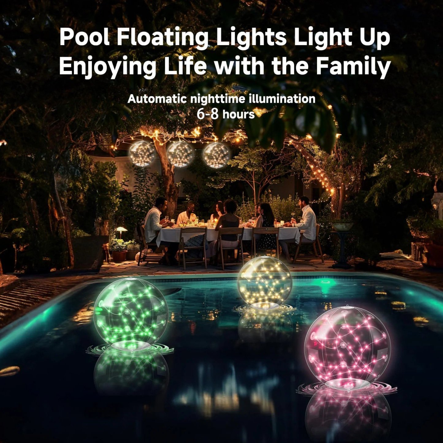 【Versatile Ambiance�?6 Colors Glowing balls Lights Elevate your surroundings! These LED are perfect for swimming pools, gardens, lawns, villas, courtyards, or pathways, adding a touch of magic to weddings and parties.