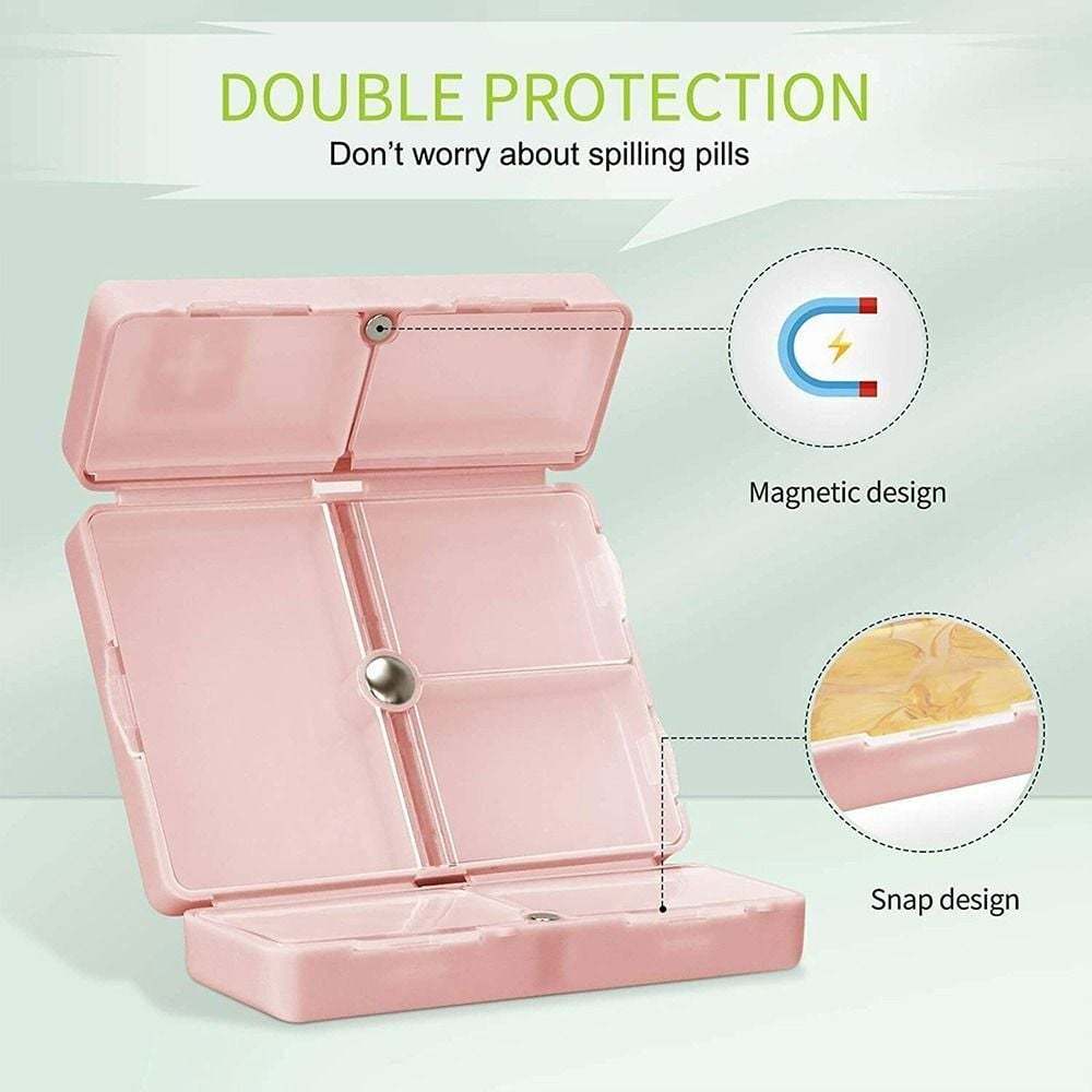 ✨[Magnetic Design]The magnetic design is convenient to open and close, and the double-layer closed design prevents the pills from falling out, providing double-layer protection for the pills.The push button stays closed once locked and securely snap shut keeping pills safe.The outer container and each compartment have a lid to resist popping open even when dropped.