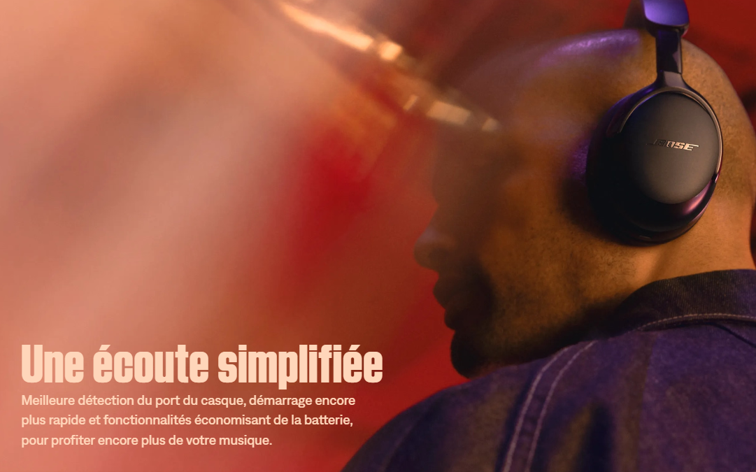 Le casque QC Ultra nouvelle génération offre une écoute d’encore meilleure qualité avec une réduction de bruit améliorée, plus de modes immersifs, des matériaux raffinés et une écoute confortable.