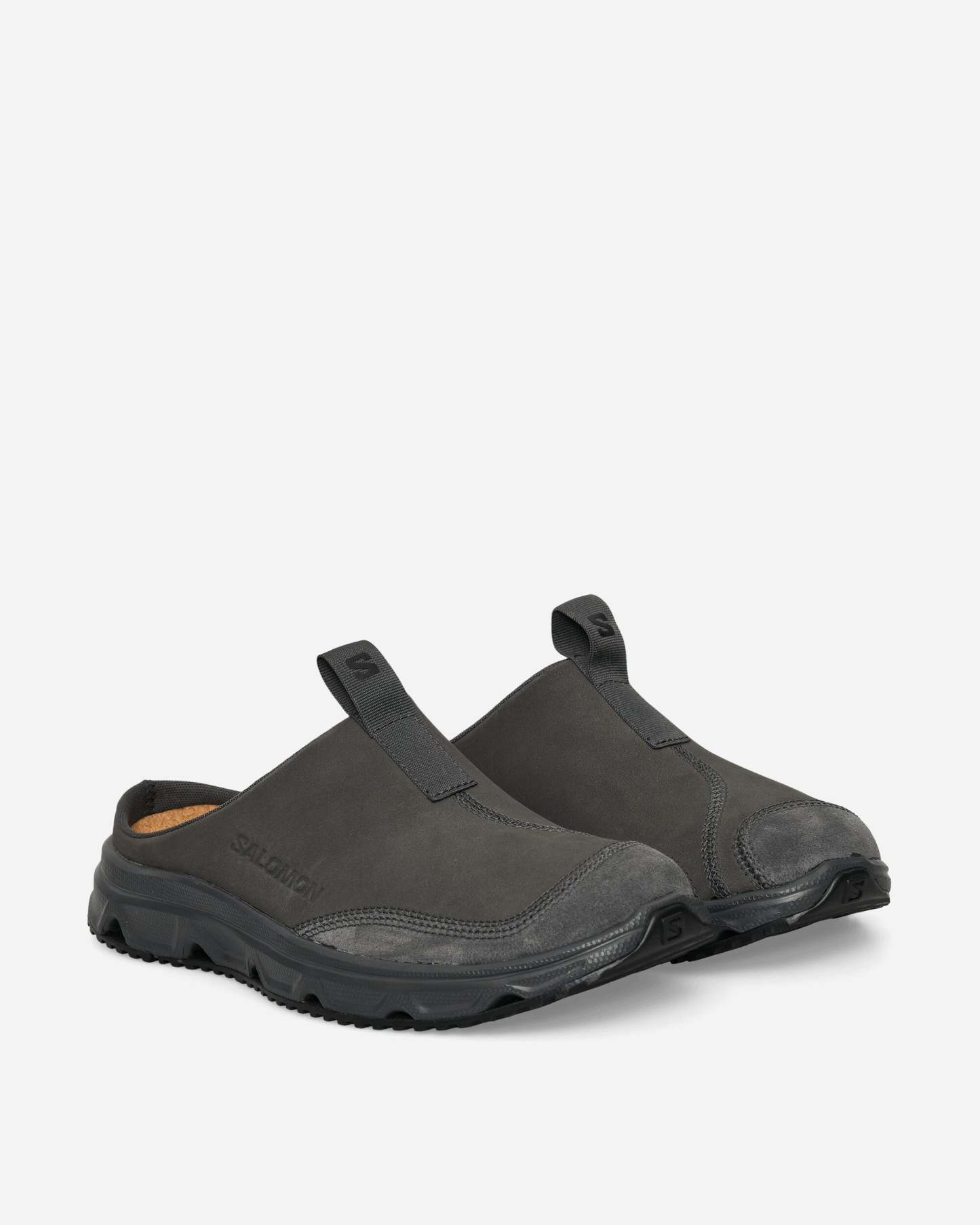 The RX Slide Leather is a revised rendition of salothtmon��s classic recovery shoe, updated with a select material composition of premium leather on the upper and a cork footbed for supreme relaxation.